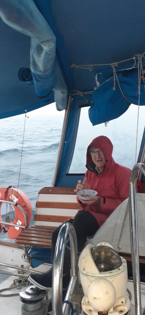 Around this time Gee asked if I had a candle. Thinking it was my mis-hearing of the accent, I repeated … “you mean a candle, candle?” … “yes, I’ve cooked a cake and I need a candle” replied Gee. Still not quite sure where the conversation was leading, I enquired further, “what do you need a candle for?” … “It’s Jim’s birthday, and I need a candle to stick into the birthday cake” … “Oh!!!” say I, “I’ll have a look, we’ve got pretty much everything else on board, I’m sure we’ve got a candle”