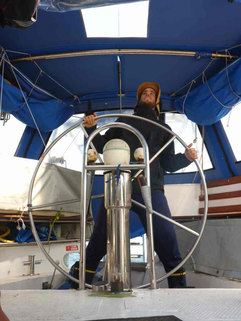 Jorge’s steady hand at the helm literally kept us on course through the narrow waterway as we battled to bring down the sails and contend with winds gusting up to 50 knots
