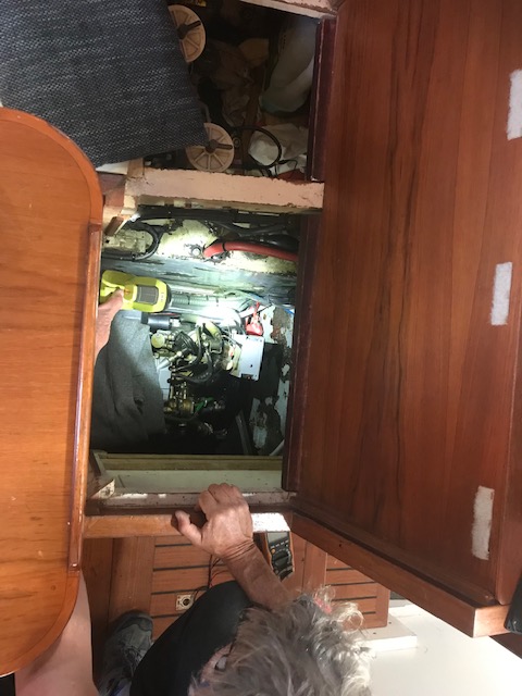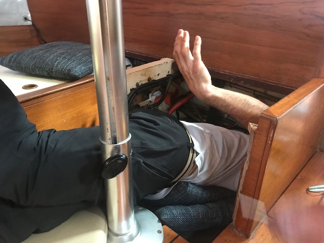 Trouble was, the generator was NOT sitting on a test-bench in a factory somewhere. It was mounted below the floor, under the saloon settee, in the corner of the already small engine compartment, just above the bilge, with the previously mentioned grey electrical plug up-close to the side of a fuel tank.