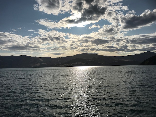 After a brief tour of the ship we up-anchored, headed out and down the harbour, again picking up a following of Hectors Dolphins as an escort from about half way.