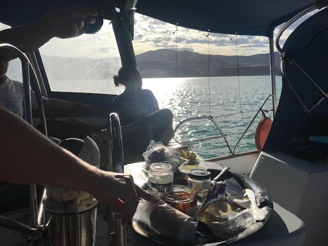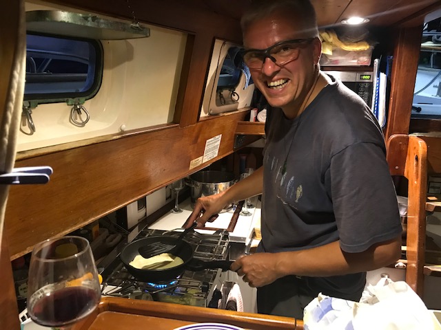 We had contemplated going ashore for dinner, to celebrate the end of this sailing leg, but by 7:30pm our focus was more on making our own dinner aboard.