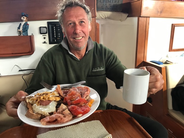 It was a short walk across the road back to the boat, where John prepared an amazing fish-dish – from his earlier catch, washed down with a rather cheeky “Summer Breeze, Nelson 2017 Pinot Gris” … P&O eat your heart out!