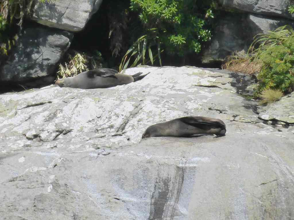 There were also the three New Zealand Fur Seals sun-bathing on a large rock as we entered the bay, with two of them remaining, despite us pulling up next to them for a proper gawk and photo op.