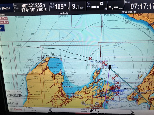 Around this time, we crossed our in-bound track from Australia, way back on the 4 February, having now successfully circumnavigated the South Island. It was a good feeling, but it seemed we were returning to a very different world to the one we’d left, less than two months ago.