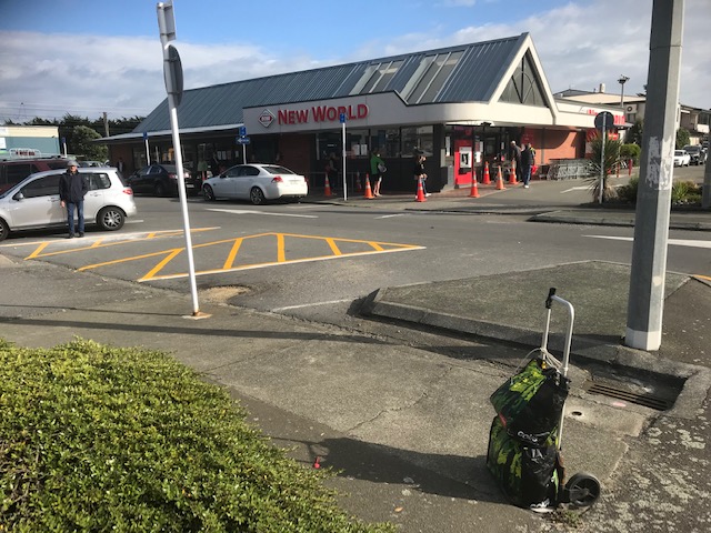 In order to avoid a long queue, I’d banked on getting to the store for opening time, which I took to be 8:00am. My newly acquired habit of sleeping-in soon put paid to that, and so it wasn’t until 8:30 that I was donning rubber gloves and reaching for a trolley, as I engaged in friendly chatter with the only guy there outside on the pavement; who I initially thought was wanting to use the ATM at the supermarket entrance.