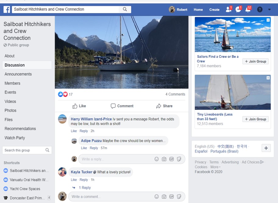 Along with a few choice photos, of Chimere etc … my Facebook post included the usual … “Greetings all, I’m still looking for crew to help me sail my 16m Chimere home to Melbourne (Aust) ASAP bro. Crew need to be Aussies, or Australian residents – already in NZ and can get to Mana without breaking the lock down rules. Tall order I know, but no harm in asking …there might just be a few Aussies stuck in New Zealand who’d like to sail home.”