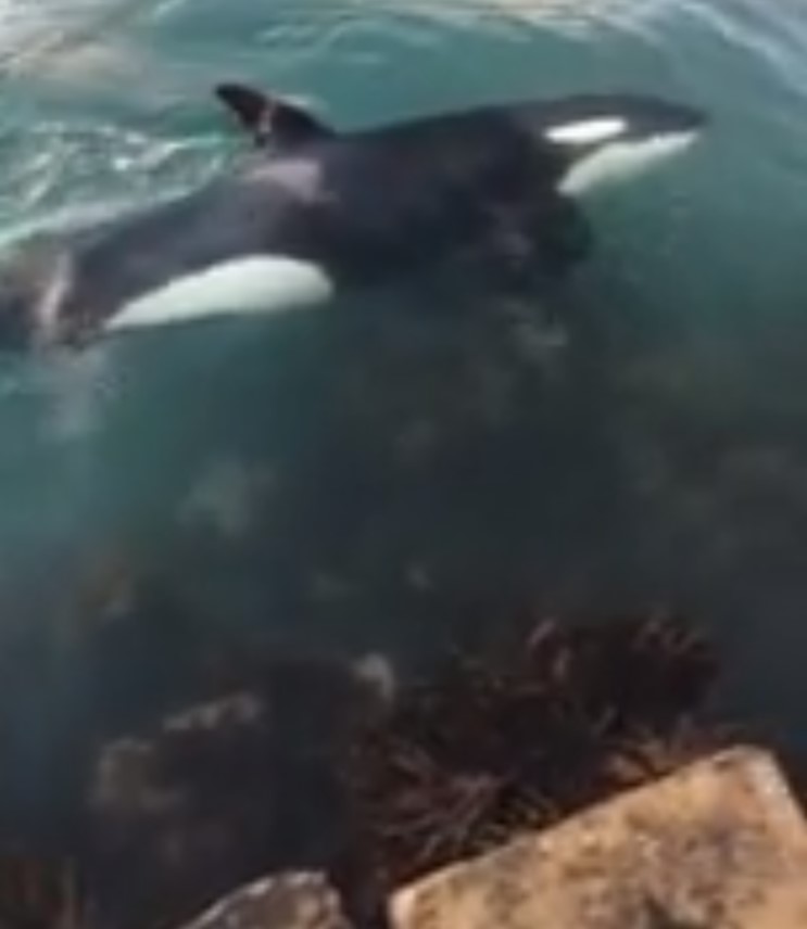 That’s where the orcas were on Saturday, just a few metres from the shore