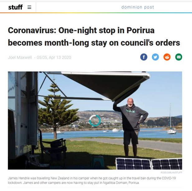 Around mid-morning I had a call from a nice chap, Ben, at the media outlet “Stuff”, to say that they were about to  press the “GO” button on the “Stranded Aussie” story.  Although, when I say … “GO” button, it was probably just a “CLICK” of  a mouse somewhere, maybe in a home study, or converted lounge room somewhere, given so many people are working from home, or where ever they can these days.