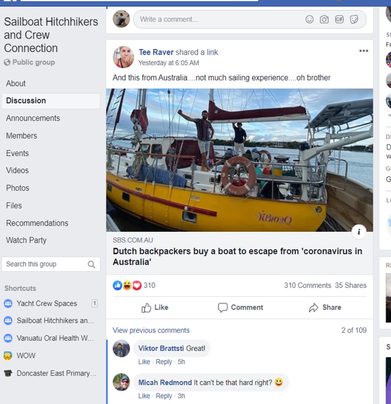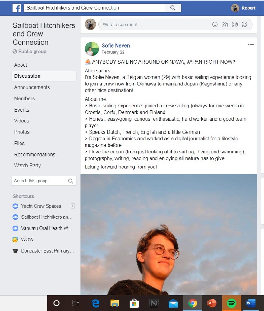 Now that I’ve set my sights on flying home to Melbourne and ideally, returning to New Zealand in 2021 to pick up where we left off … I’ve given up on looking at crew-finder-sailing-websites … but I can’t leave with out giving you a taste of the Posts, Replies and Comments.