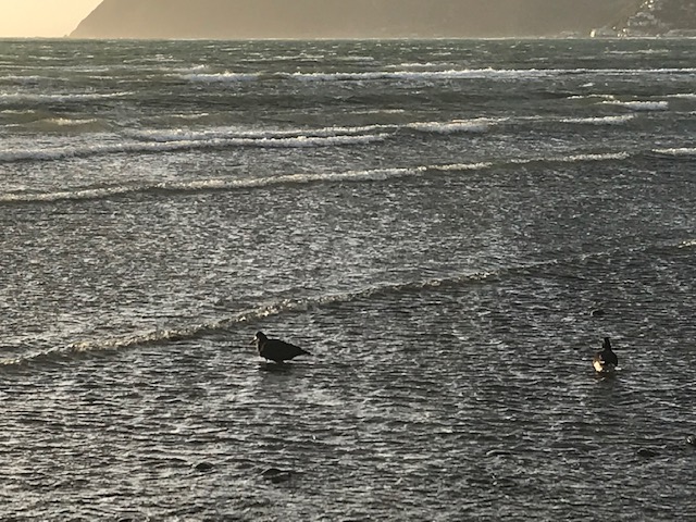 On my walk, I had to hold onto my hat … literally … with the north west wind just howling down the channel.
