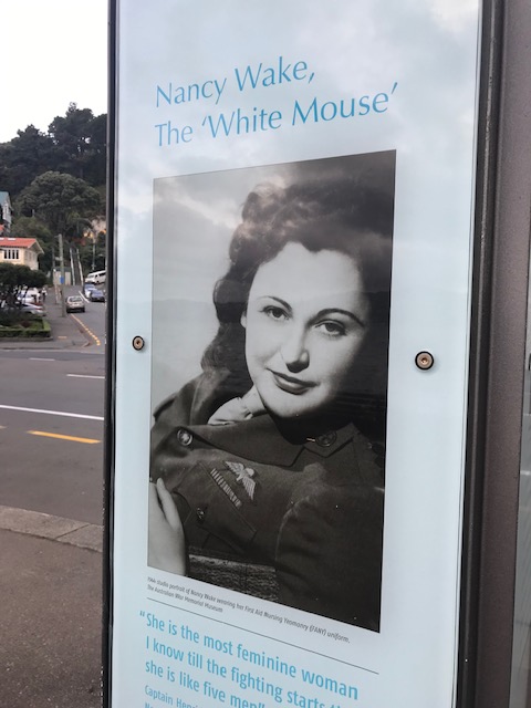 Along the road there were the occasional historical information boards. And at one point I got to read about Nancy Wake, the French Resistance agent, journalist and all-round war hero, known popularly as the “White Mouse”. As it turned out Nancy Wake … in keeping with other famous Aussies like Sam Neill, Russell Crowe and Tim Finn … was born in New Zealand (and just for the record Sam Neill was born in the UK) and would you believe … in this very street … Grass Street.