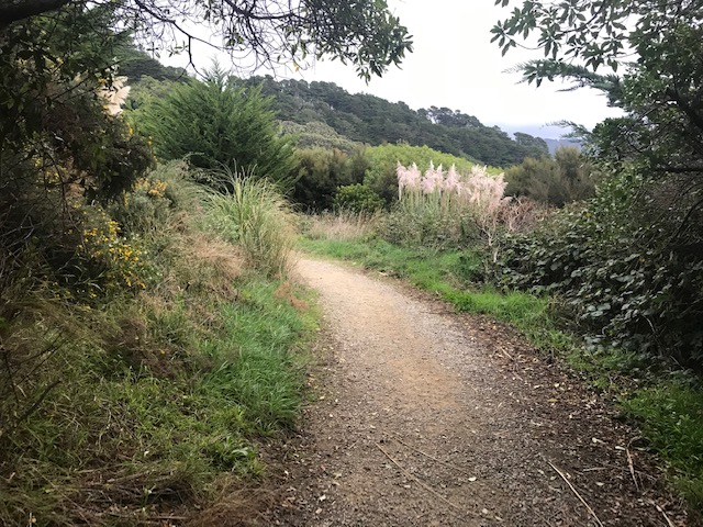 These steps naturally led to more steps, which then connected to a bush path, then more steps … all the while climbing higher and higher, till finally I came upon a sign. The sign included a map of Mount Victoria, showing the lookout at the top, plus several lines indicating a range of walking and cycling paths. Further on I walked along a road in the direction of the airport and Evans Bay, until a sign that pointed up and to the right … Mount Victoria Lookout.