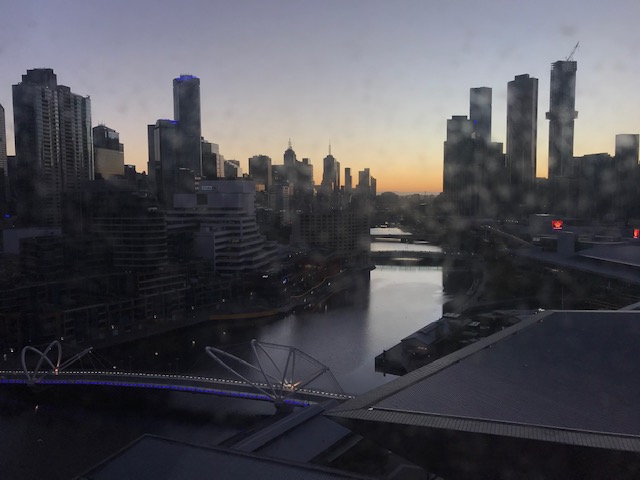 Mid-morning, I was wearing one of these dressing gowns – thinking its tightness was something I could get used to – when longtime friend, Vicky called on the phone. Vicky lives around the corner in Docklands and given she was out on her morning walk she said … “give me five minutes and I’ll wave to you from the bridge”. I briefly thought about changing out of the dressing gown, because, being so short, it left two inches of my boxer shorts protruding, (making me look a little like Captain Zapp Brannigan, for those familiar with Futurama), but I really only had time to pull the curtains and press the button to raise the blind.