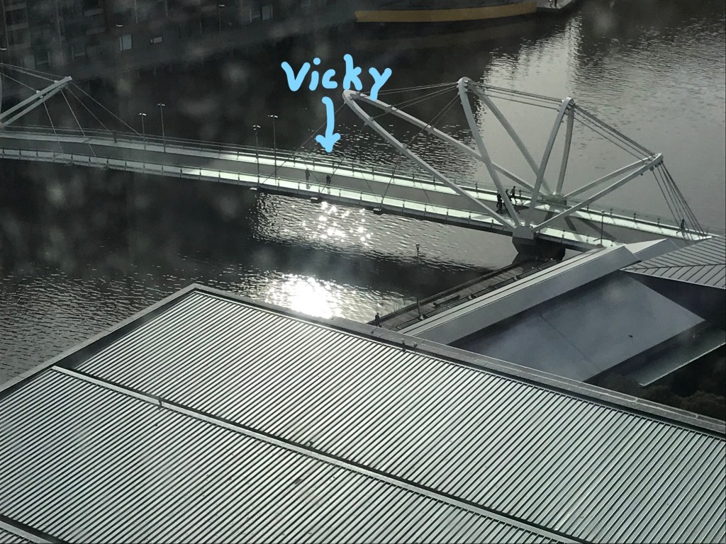 “I’m on the bridge now, with my friend … can you see us?” Vicky called through the phone.