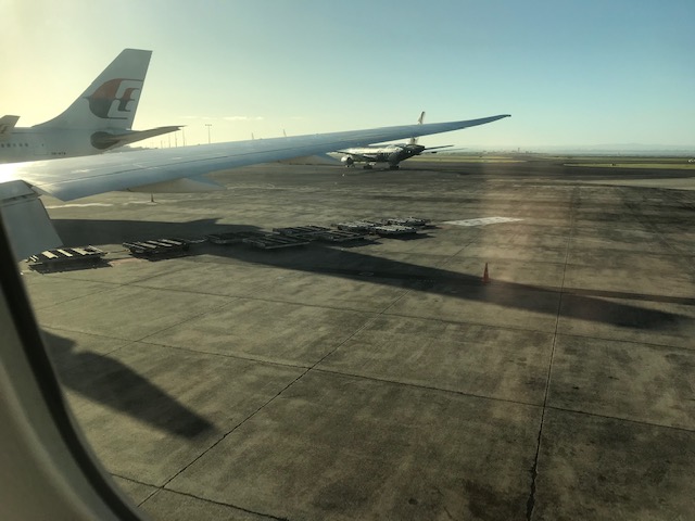 It started out ordinary enough.  Retracing my steps from the Ibis Budget Hotel to the Auckland airport – the International Terminal this time – towing my suitcase and loaded down with a backpack and computer bag.  At this point, special thanks should go to Google Maps, because although it was light at 6:45am, I did start this morning’s trek by heading across a car park that didn’t seem to be there yesterday.    Obviously, my sense of direction on land is still somewhat impaired.  There was definitely no sound of jet engines, or aircraft in the distance to help lead the way, that’s for sure.