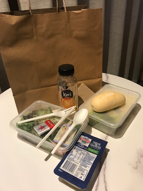 I’ve been in my room a good 10 hours now.  In that time I’ve had an afternoon nap, used the kettle to make a coffee, (two coffees) eaten all the “Welcome Pack Treats”, enjoyed dinner-in-a-bag comprising macaroni & salad, fielded a phone call and a dozen questions from the resident hotel nurse about my “Wellbeing” and whether I had any conditions, medication or special needs (apparently chocolate ice-cream doesn’t count,  although she said I could call reception and they could probably arrange it … ohh-kay…), caught up with lots of well-wishers, family and friends on multiple communication platforms and did my best to write a few words for tonight’s blog.  Just 13 days to go, and I’m free.
