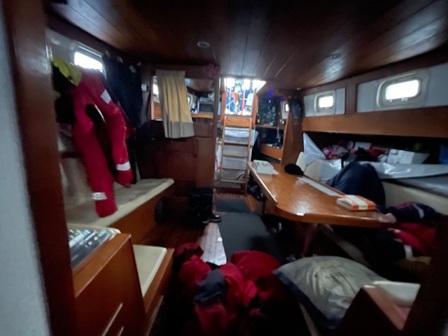 On reaching the cockpit, it was clear action was required, and quick. Sam, who had been asleep in the starboard cockpit bench-bunk described it later … “It was like the fire brigade had turned up and all of a sudden you were all doing stuff to put out the fire.”