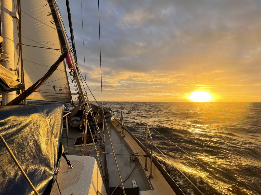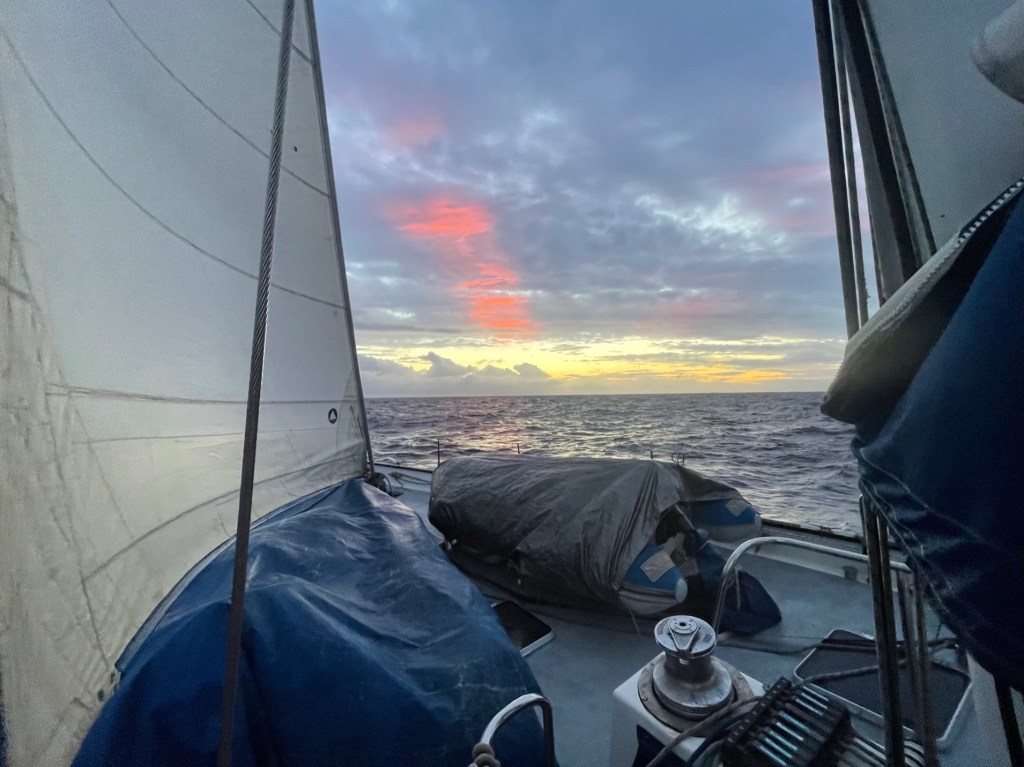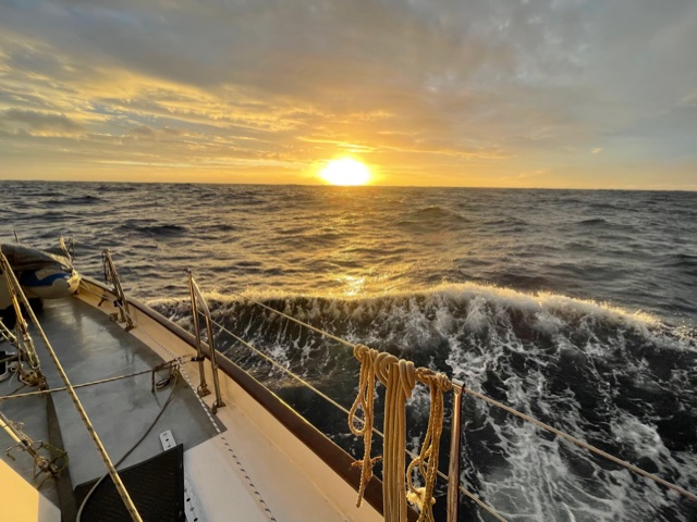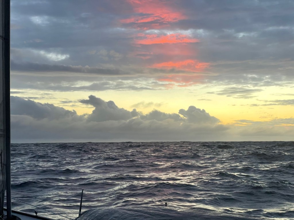Whilst we never actually saw the sun, light returned once more with the dawn, Harm took over my watch, and then all four of us set about managing the sails and conditions throughout the day.