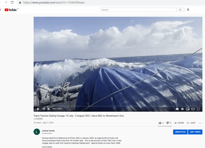 Speaking of Home and Lockdowns … I’ve been making good use of my time … locked down as I am, at home … and have just completed a video of the trans-Tasman voyage.