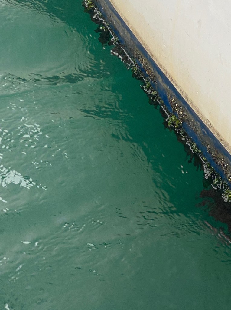 A recent photo of Chimere’s waterline – everything from mussels to seaweed and everything in between