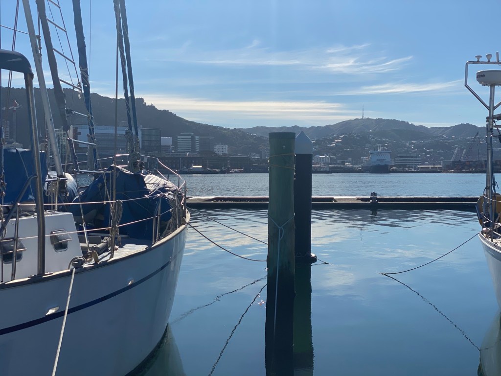A rare day on Wellington Harbour – Sweet as bro!Chimere’s berth must have the best view in the harbour