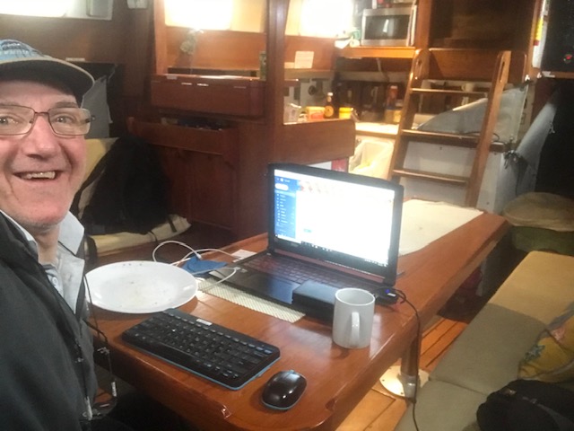 Between “compulsory”, Youtube viewing that included … “10 Fastest Planes Ever” … “Simon Cowells Favorite Britain’s Got Talent Acts” and “11 Construction Fails…”, I was mostly communicating online with boating folk … in my continued attempt to find crew to help me sail home.