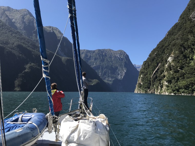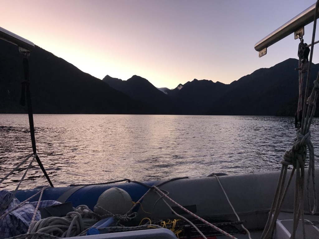 It would have been a perfect night’s sleep at anchor in Jackson Bay, if it hadn’t been for the anchor alarm sounding at around 12:00 midnight, as the change of tide drew Chimere to the chain’s outer limit, albeit in the opposite direction to when we arrived.