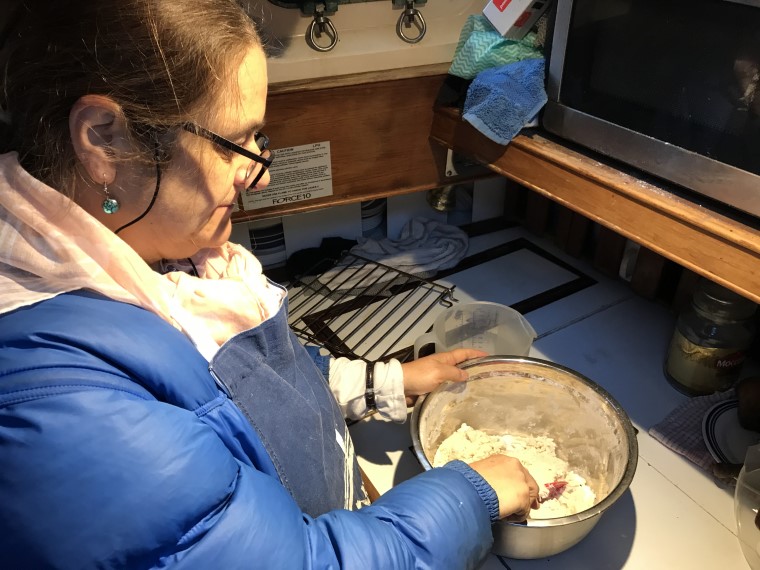 As the night continued, John and I took turns at being on watch … 3 hours on, and 3 hours off … till the welcome sight of dawn. Our current plan is to make the most of the kind weather and mild seas, so as to arrive in Porirua Harbour, behind Mana Island on Friday, when friends will be joining us for the next stage north to Opua and the Bay of Islands