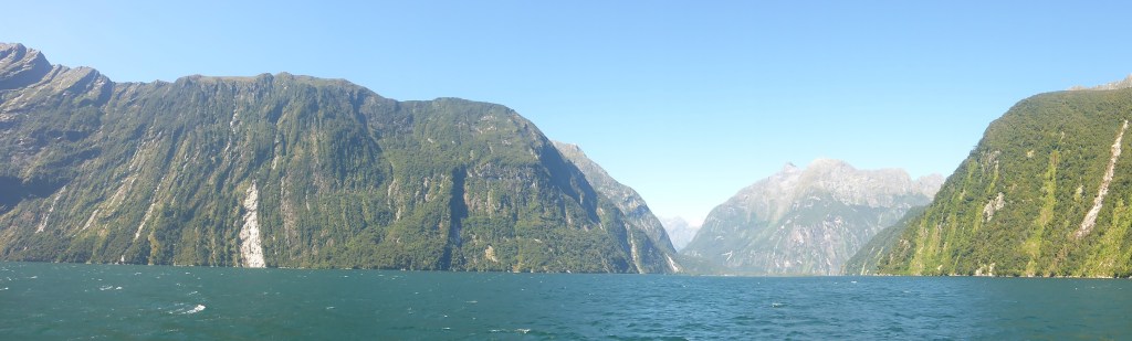 The mountains remained a feature for most of the day – Mt Sefton, Mount Cook, Mt Tasman to name just a few – All over 3,000 metres high and all shining in the sun and at times with basins of glacial white between the peaks. We were occasionally joined by pods of dolphin, as well as groups of seals, plus the ever-present albatrosses, which are just magnificent to watch.