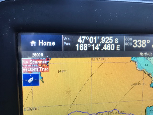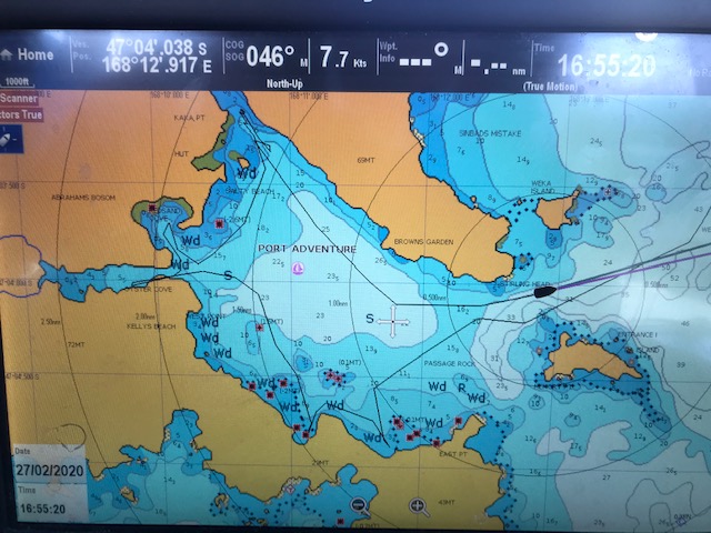 “Where are YOU guys off to?, they wanted to know. And after explaining our NZ2020 voyage, one chap, a man called Bill, expressed interest in joining our leg from Milford Sound to Wellington. This led to a tour aboard, discussion over the Fiordland charts and the exchange of contact details.