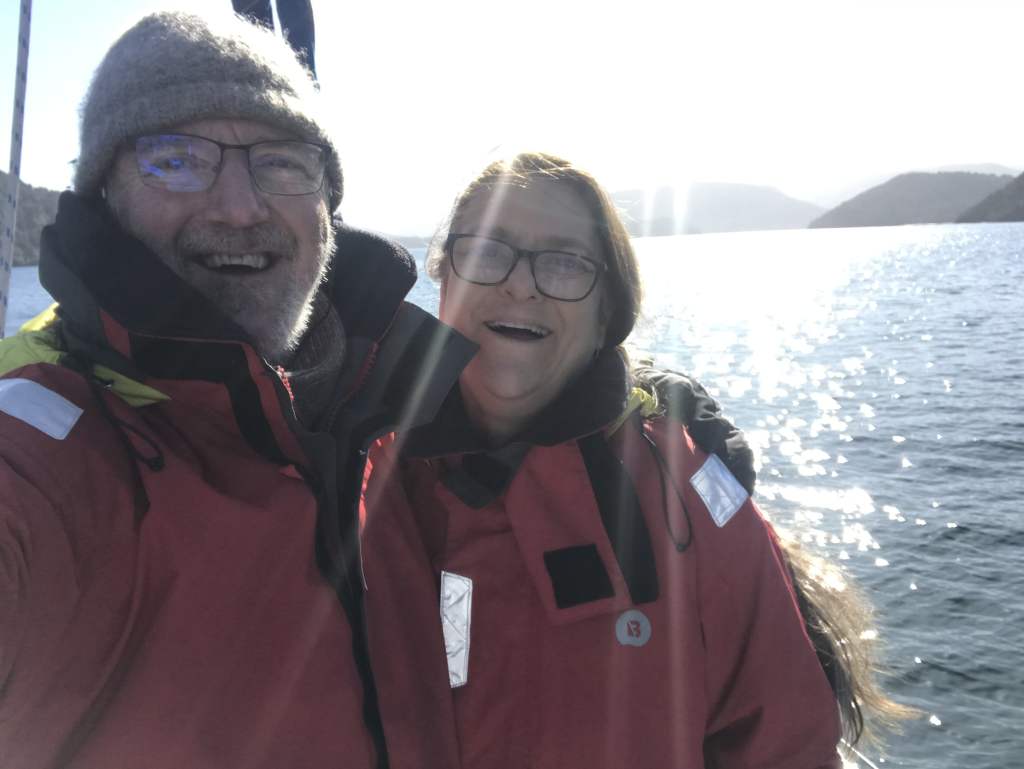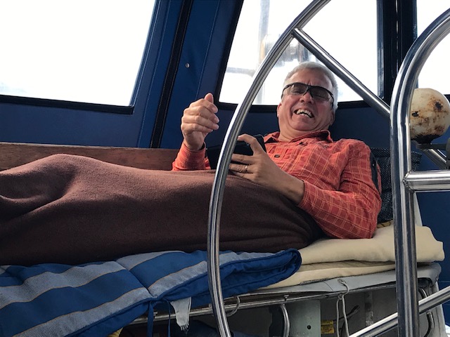 Captain Rob and his other First Mate … Linda James soaks up the vibe …