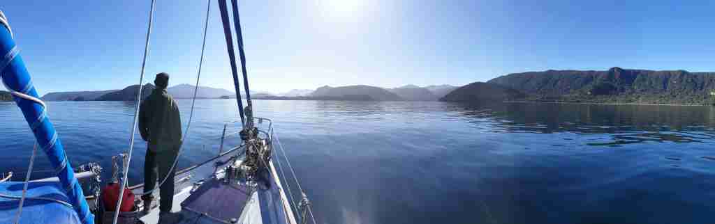 By 9:00am, we were away as planned, retracing our “bread crumbs” from the day before, down Long Sound and briefly into the Tasman Sea, before veering to starboard and up the Eastern Arm of Chalky Inlet.