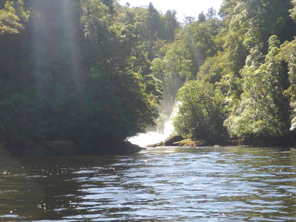 Two nights at the top of Edwardson Sound gave us a good chance to re-charge the human batteries From our anchorage it was short dinghy ride to the head of the lake, and from there it was a bush walk up and up, to the waterfall A handsome sight and sheltered from the impending gale