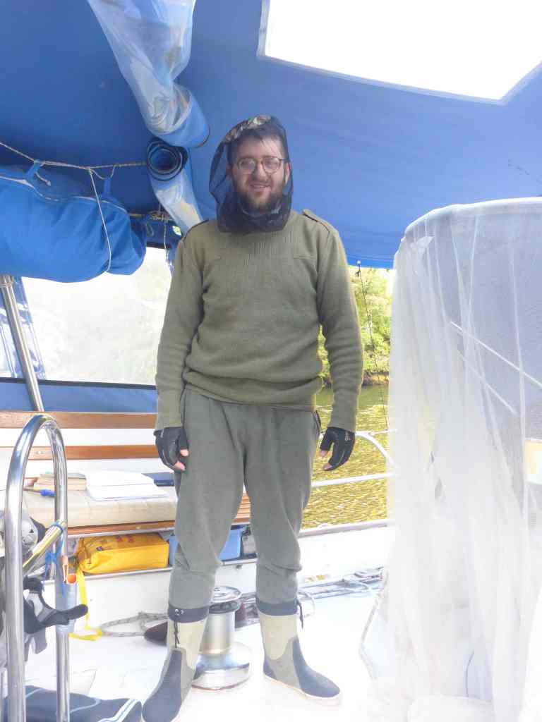By now it was around 4 o’clock and after making sure the netting was securely covering all hatches aboard against the increasing numbers of sand flies, we were faced with a dilemma. Whether we should have a late lunch and a late dinner, or alternatively, a snack instead of lunch, followed by an early dinner.