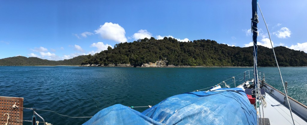 Despite the constant, but diminishing, swell that entered Otago’s Retreat, our anchorage, close to the entrance, worked out to be a remarkably still place to drop the pick.