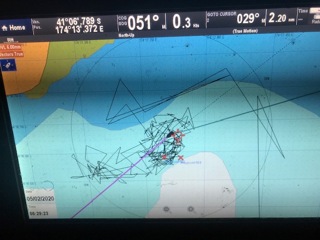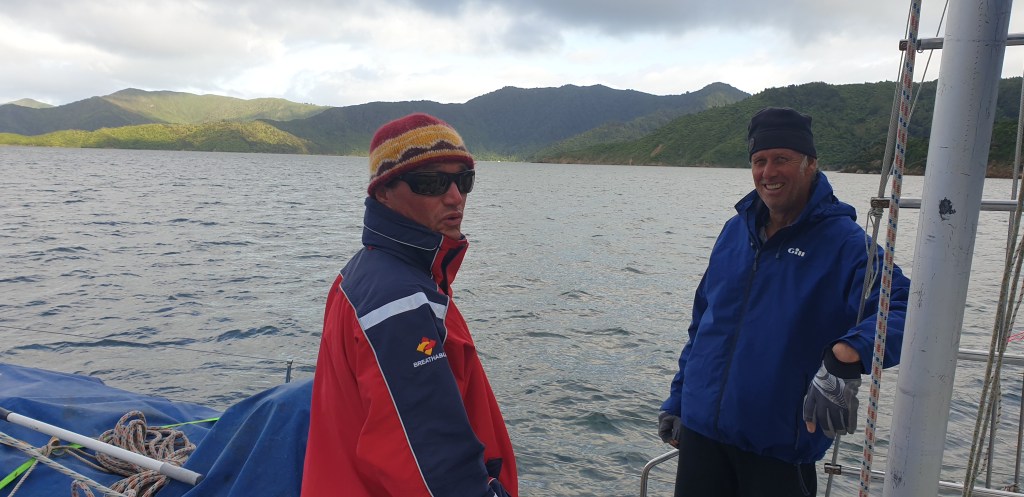 As the night drew on, the wind gusts diminished, till by 5:30am – our waking-up time – it was … “as still-as bro” … to use the common vernacular. To emphasis the point even more, of course I could have used the phase … “as if we were beached-as bro”. You can see why I let Kiwi-John do most of the talking on the phone. Although, having studied here in New Zealand between 1978 and 1981, I managed to acquire a fair smattering of the local lingo, much of which was already starting to return.
