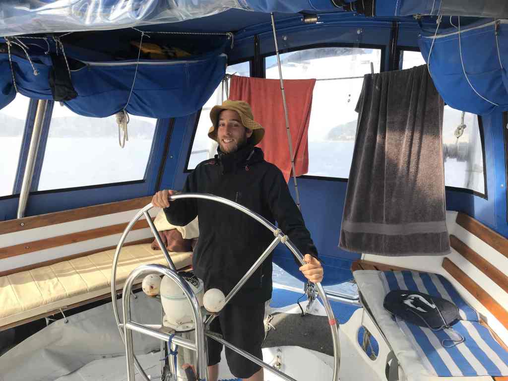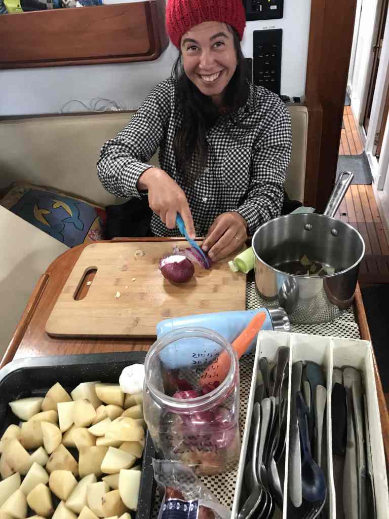 As we approached the Picton marina, and knowing that all fresh produce on board was destined for the dustbin (or the quarantine official’s … “next backyard BBQ, or cook-up“ … as I heard one local suggest) Jorge was seen at the galley stove madly frying up all the fresh mince from the freezer, squeezing the last of the limes, eating as much honey (from a 1kg bottle we’d only opened in the last few days!) and chopping apple into yoghurt for his breakfast.