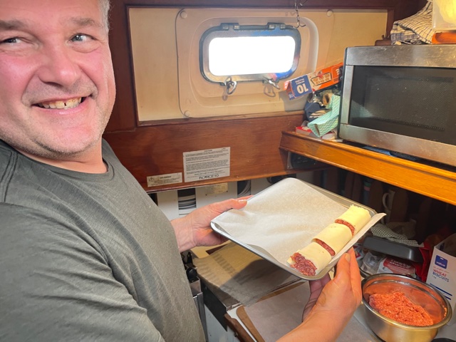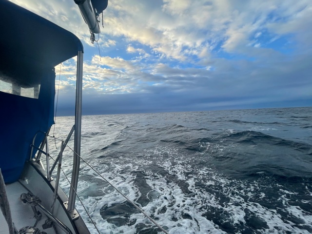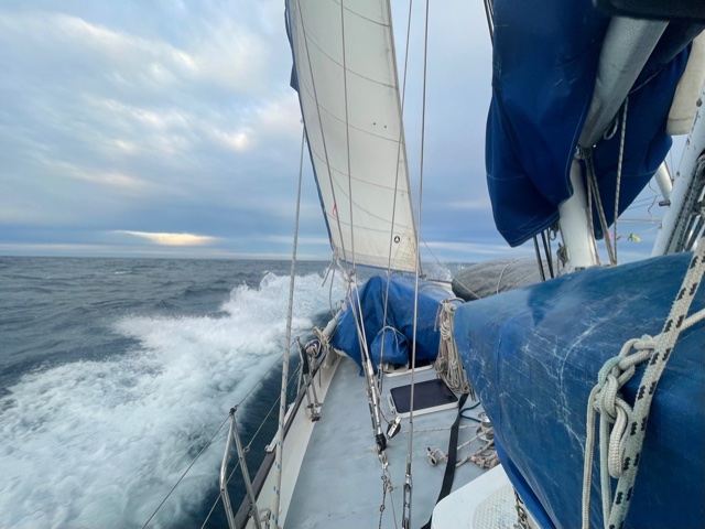 Pretty soon, we’d reefed the main, adjusted the jib and had a reasonable motion happening … still in the wrong direction, and still at just 3-4 knots, but at least it was comfortable. We had a plan. And it involved tacking our way slowly forward by means of a series of zig zags – we had done THIS before and you never really get used to it. As the saying goes … “Gentlemen DON’T tack”.