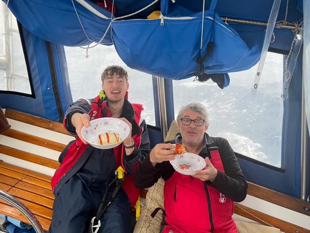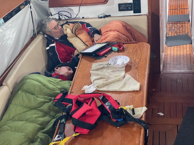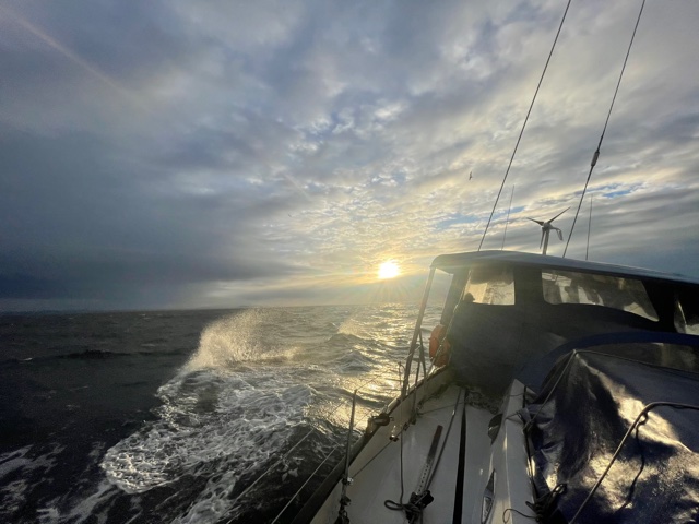 “Ease the sheets … we are no longer tacking!” … and just like that, nearly four hours of bashing to windward, with the prospect of hours more to come, was simply wiped away. We were back to stable sailing once more – in the right direction – all of a sudden, the rain and air didn’t seem so cold anymore – despite the visible fog from our breath.