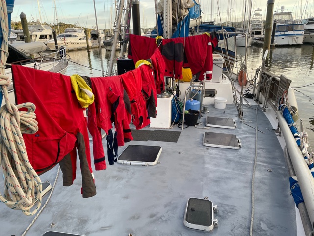 As for tomorrow … our list of tasks include … buying stores, stowing and tying down , filling up the fuel tanks and going through a bit of vessel familiarisation with the lads. Plus some more studying of the weather forecasts and optimal routes for the expected voyage ahead – direct to Westernport in Victoria,.