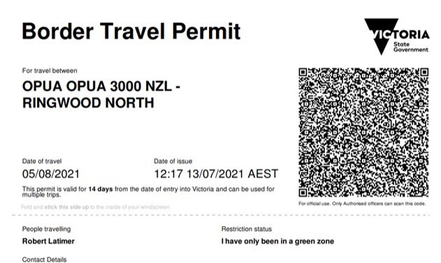 According to Borderforce/Customs … they have no problems with us returning to Australia, but without the required State Health “Border Travel Permit” they are obliged to essentially call the police to cart us away on our arrival.