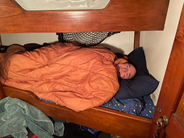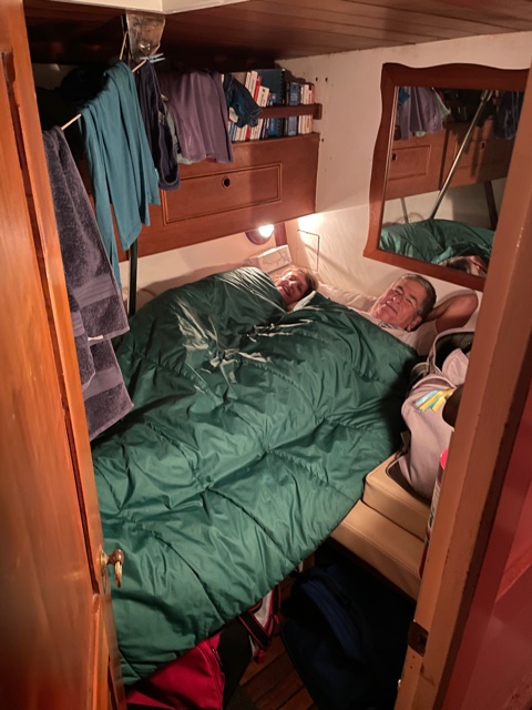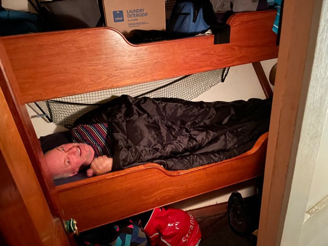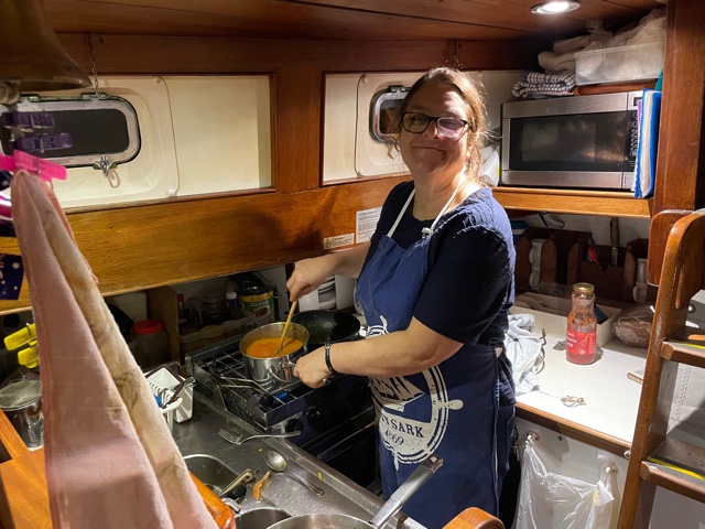 And on reflection, I couldn’t think of a time. Maybe if the boat was smaller, it might be different. The beauty of Chimere is that everyone, mostly, has their private space, or cabin, then there’s the “social” spaces … in the saloon, cockpit and up on deck. I think we also value and respect each other’s skills and contributions. I know I greatly value the way John can fix most things with Number 8 wire and when he can’t, he’ll nearly always find an alternative.