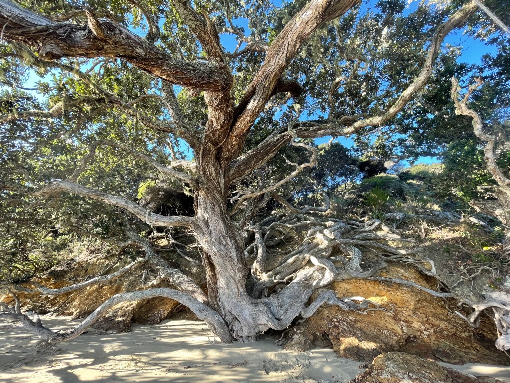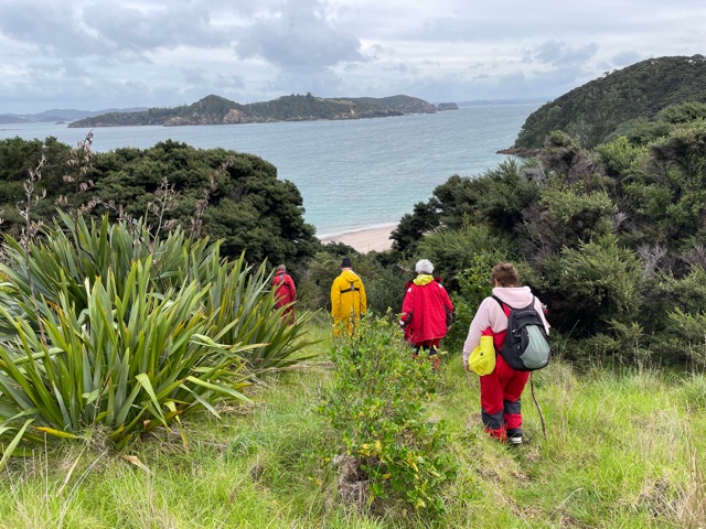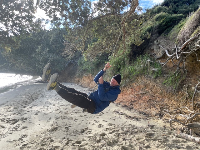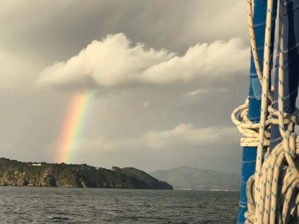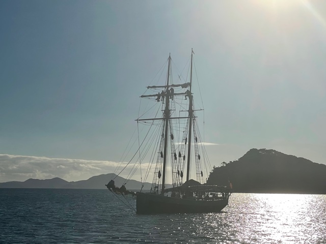 Even though we started late, our course, mostly under sail took us to Urupukapuka – another one of those places you just like saying – for lunch and there was even a chance to go ashore and make sandcastles. The small indentation on the coast called Paradise Bay – where we anchored – was also the chosen spot for the training ship R.Tucker Thompson to drop the pick, with a range of activities underway, including climbing the mast.