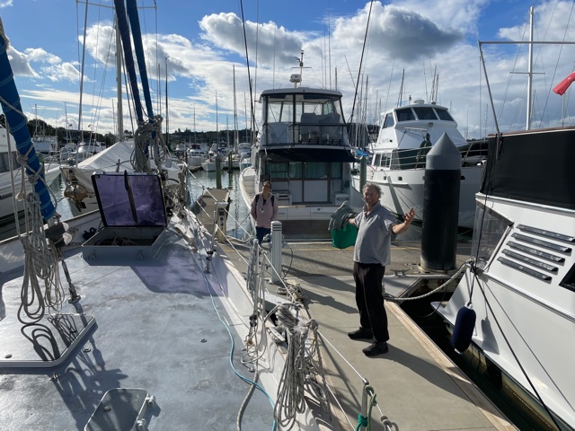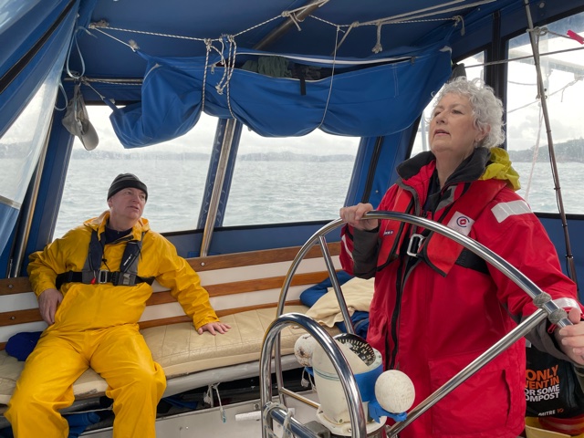 So, again, today was John’s last sail on Chimere … and it was also going to be his last night sleeping aboard, but this morning, as we prepared to welcome another clutch of the Land family, we discovered that John’s car had been broken into overnight, with an intention to steal it. Consequently, John was reluctant to leave it in the public carpark overnight, for fear of the burglars returning to complete their work.