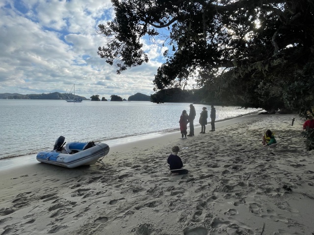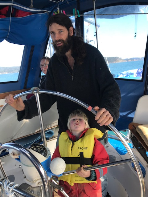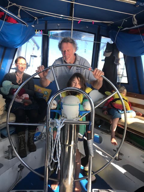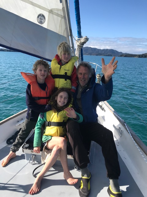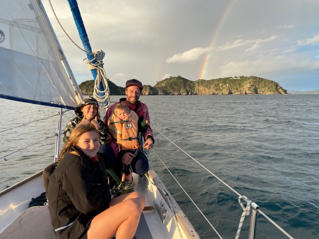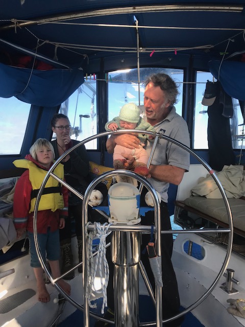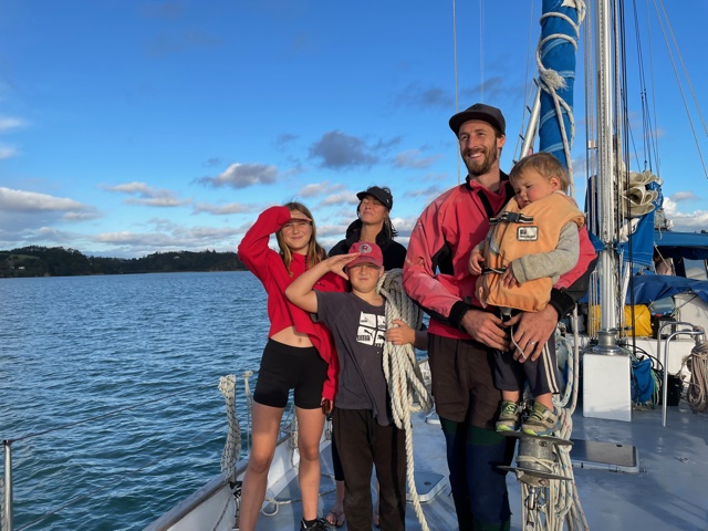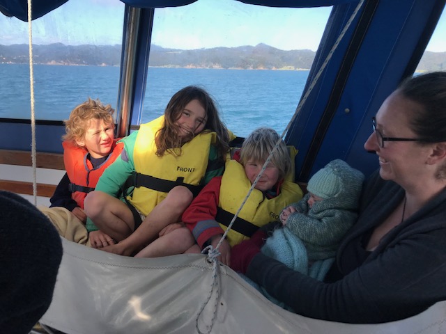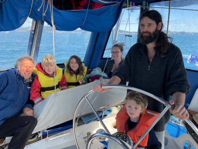 Setting aside all of the above, today was ALSO a great opportunity for John to share the sailing experience with his son Sam, wife Lou and their four children Ivy, Dusty, Haven and tiny little 3-month-old Rosie. Also onboard was Mara, one of John’s three sisters, who, along with her partner, owns her own yacht, moored a short distance from here near Kerikeri.